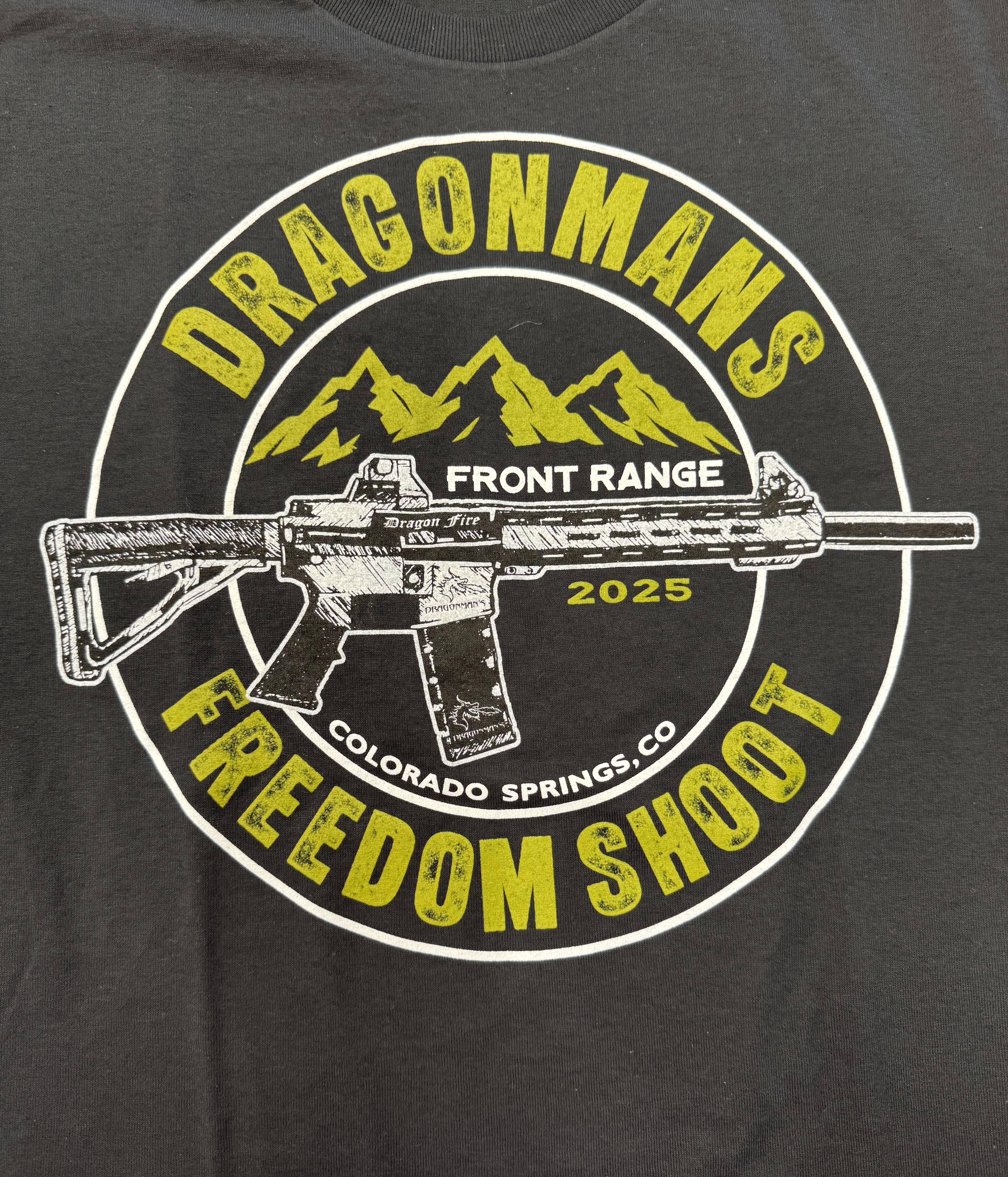 Get our exclusive 33rd Annual Front Range Freedom Shoot! We sold these this past Sept. 13-14, 2025 and while they were a crowd pleaser, we ordered too many! So, now you have a chance to own one of your very own shirts. This design will NOT be available again once they are sold!